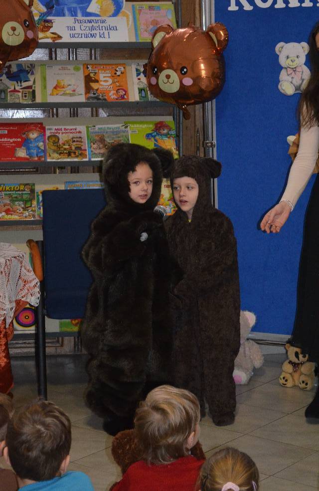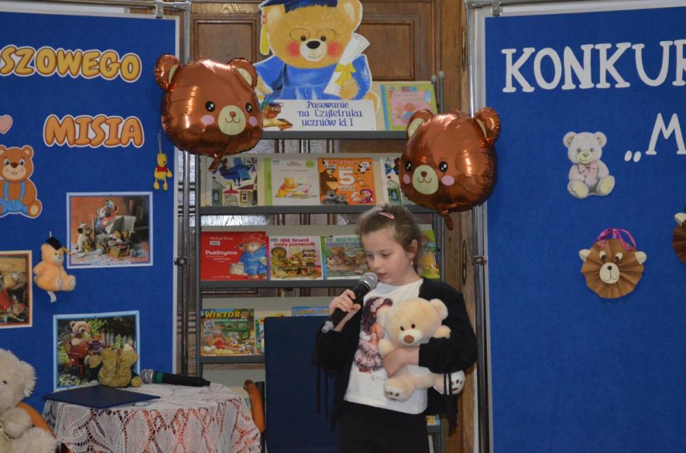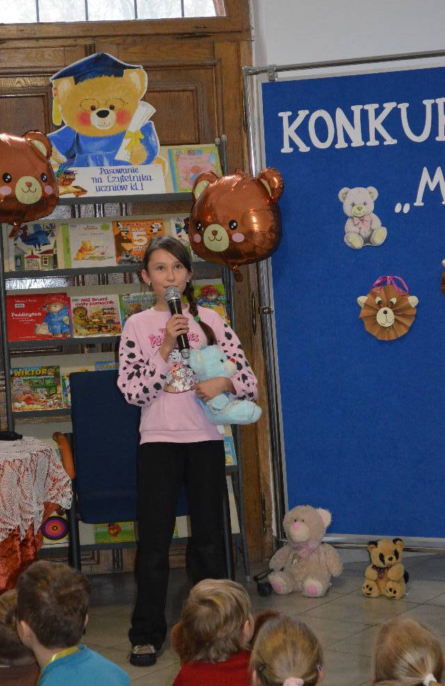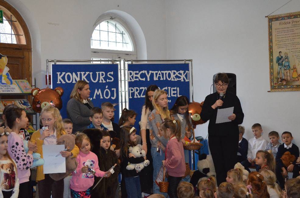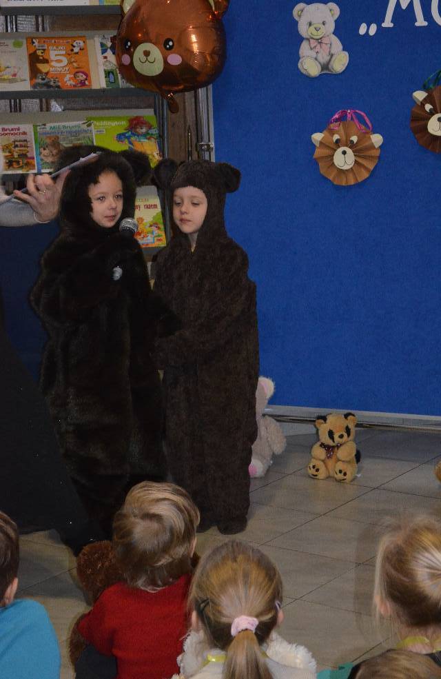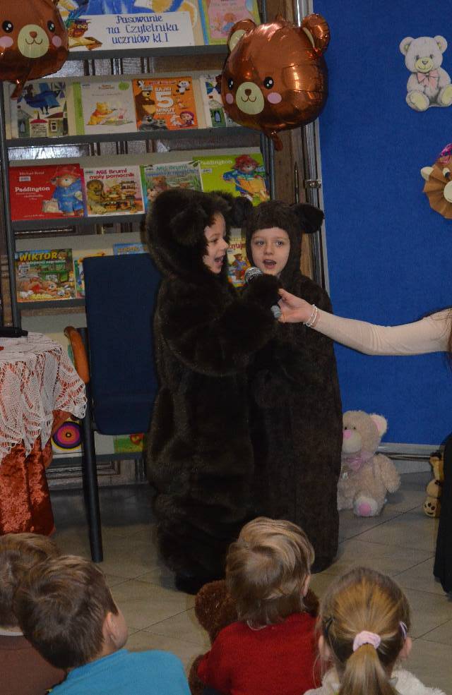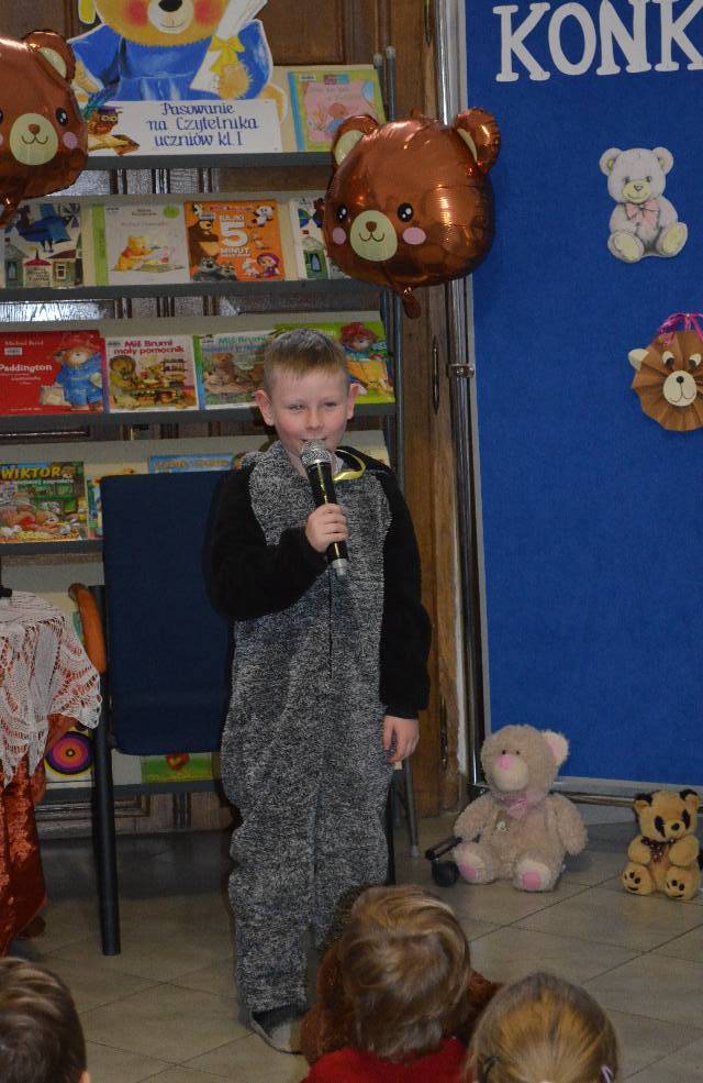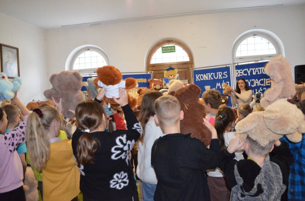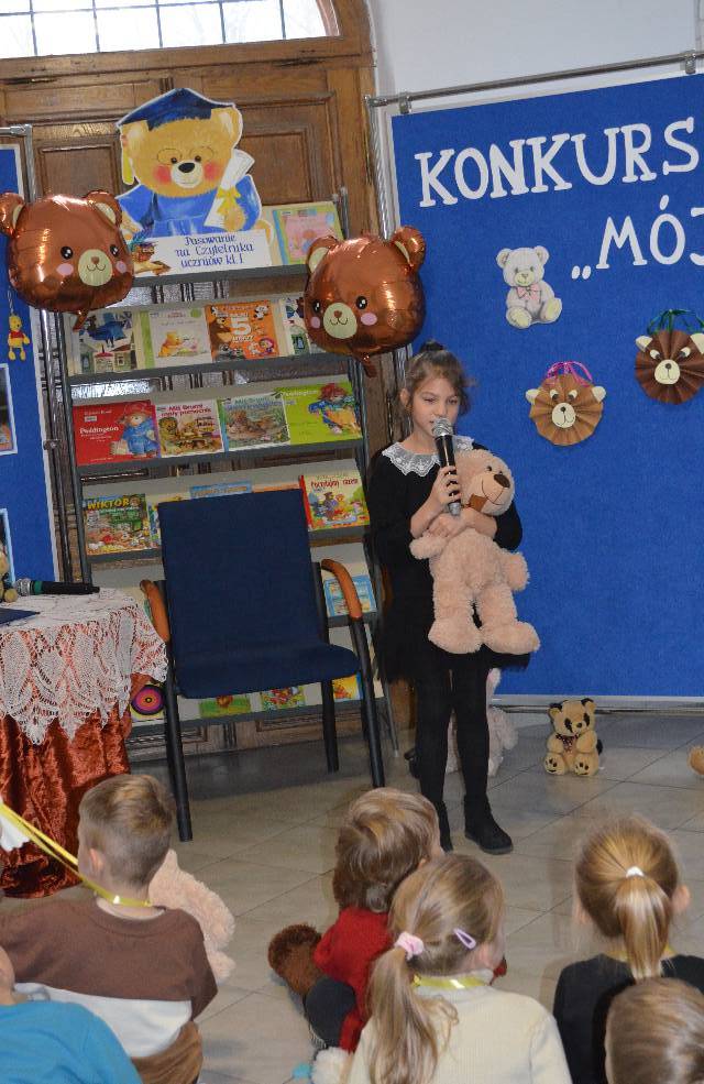 Dzieci z klas 0-3 i ich misie przybyły na świętowanie razem z Panią Dyrektor, Komisją Konkursową oraz swoimi Wychowawczyniami. Na początek wspólnie odśpiewano misiowy hymn „Pokochaj Pluszowego Misia”, następnie odbył się konkurs recytatorski pt. „Mój przyjaciel Miś”. Powołana komisja uważnie wysłuchała wszystkich występów i wybrała najlepsze.