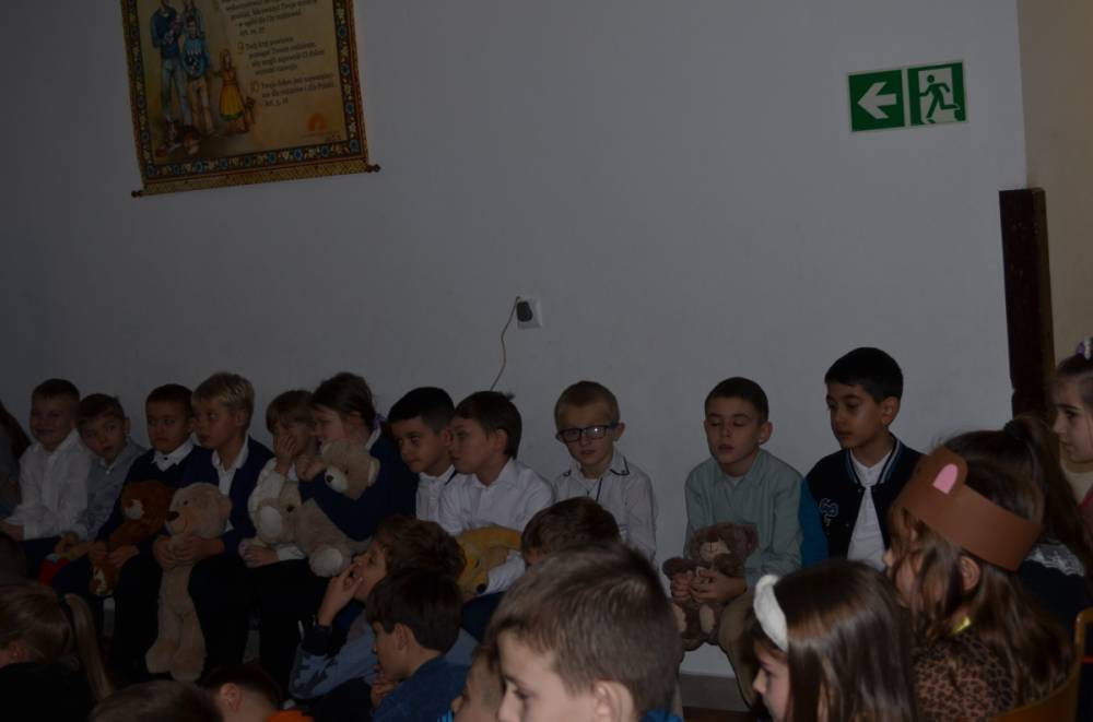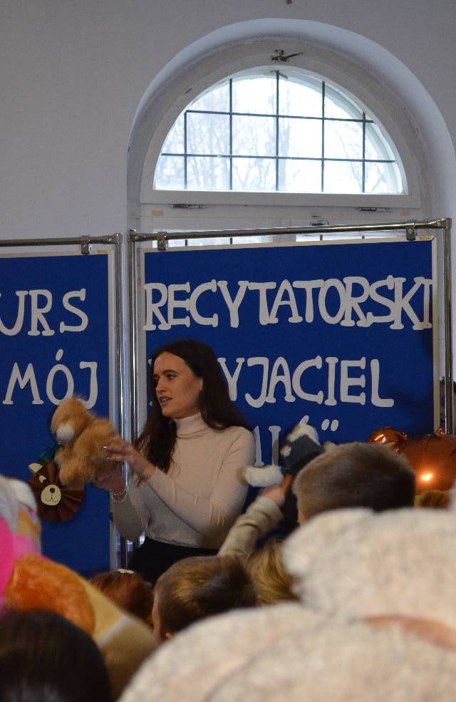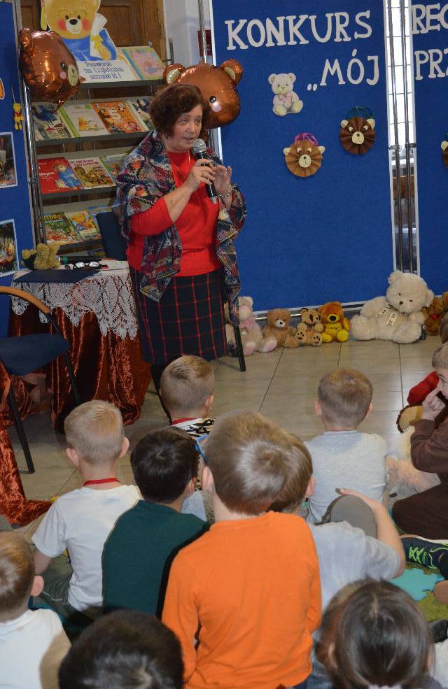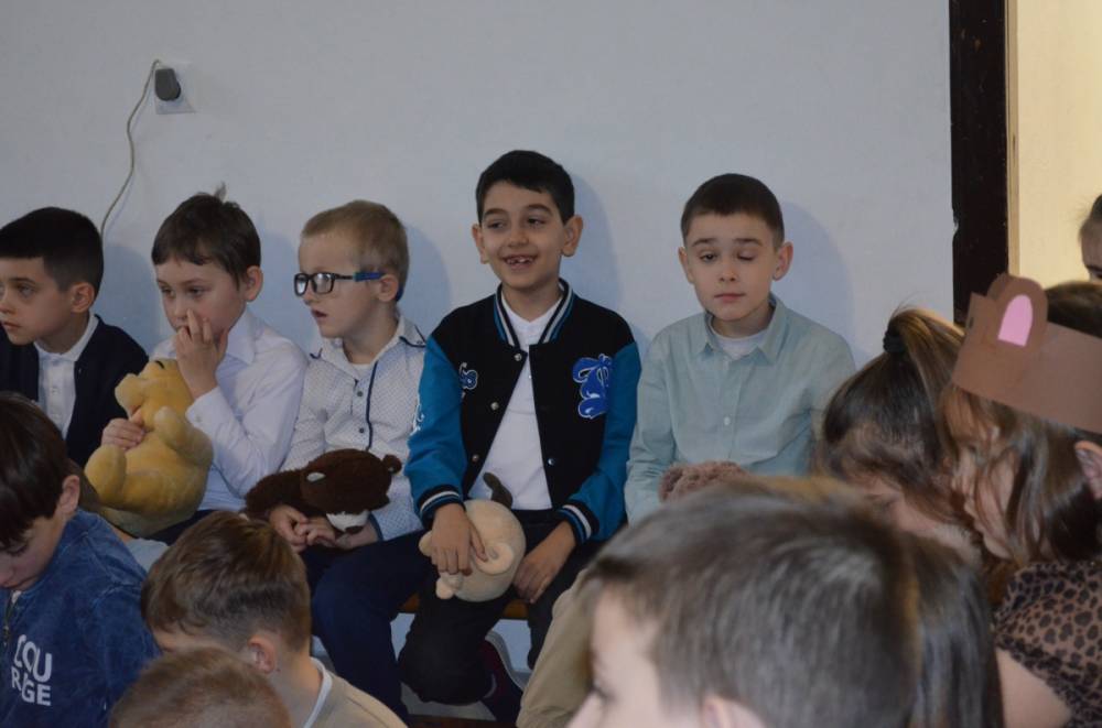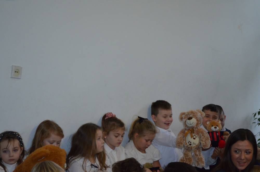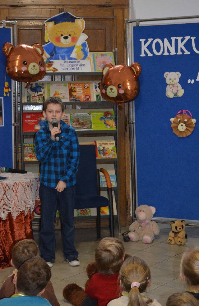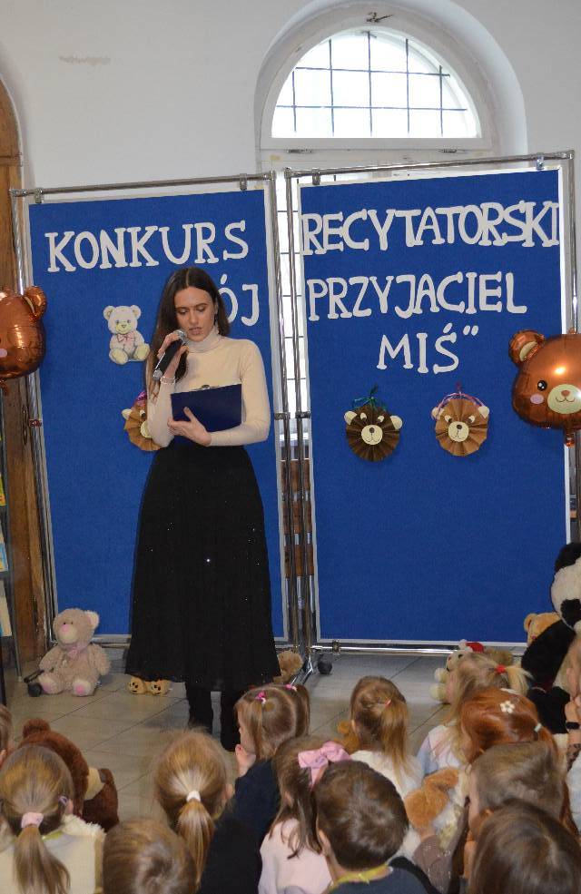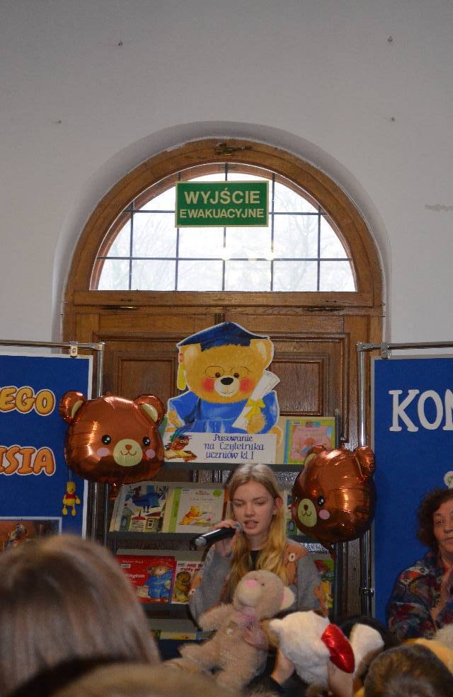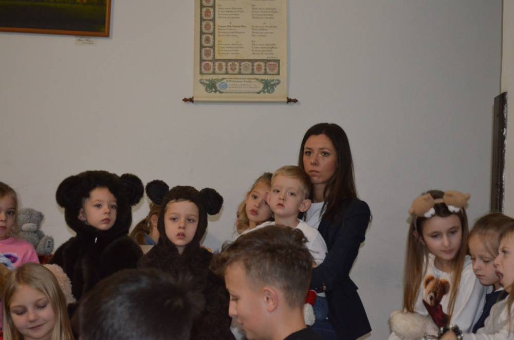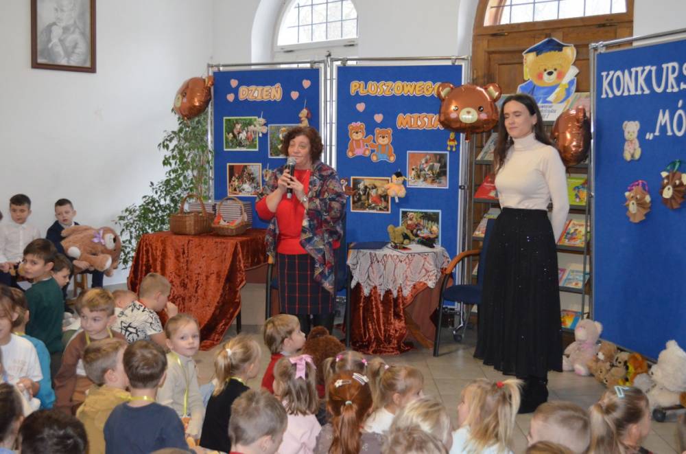 Dzieci z klas 0-3 i ich misie przybyły na świętowanie razem z Panią Dyrektor, Komisją Konkursową oraz swoimi Wychowawczyniami. Na początek wspólnie odśpiewano misiowy hymn „Pokochaj Pluszowego Misia”, następnie odbył się konkurs recytatorski pt. „Mój przyjaciel Miś”. Powołana komisja uważnie wysłuchała wszystkich występów i wybrała najlepsze.
