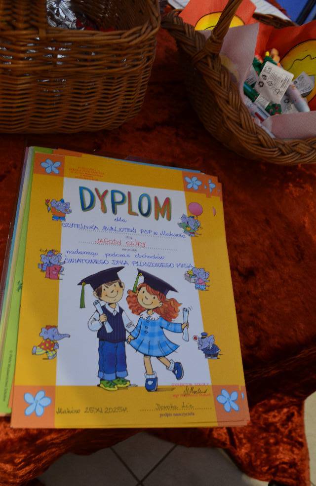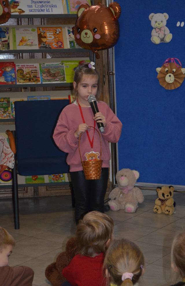 W kolejnej części miejsce miało pasowanie na uczniów klas pierwszych, dzieci stały się pełnoprawnymi czytelnikami Biblioteki. Na koniec rozstrzygnięto konkurs recytatorski, Pani Dyrektor wręczyła dyplomy i nagrody zwycięzcom oraz uczestnikom konkursu. Wszyscy wykazali się dużą odwagą, zaangażowaniem, a także wspaniałymi umiejętnościami recytatorskimi. Bardzo cieszymy się ze zdolności naszych uczniów i gratulujemy zdobytych nagród. Wszystkim dziękujemy za udział w konkursie i wspólne świętowanie!